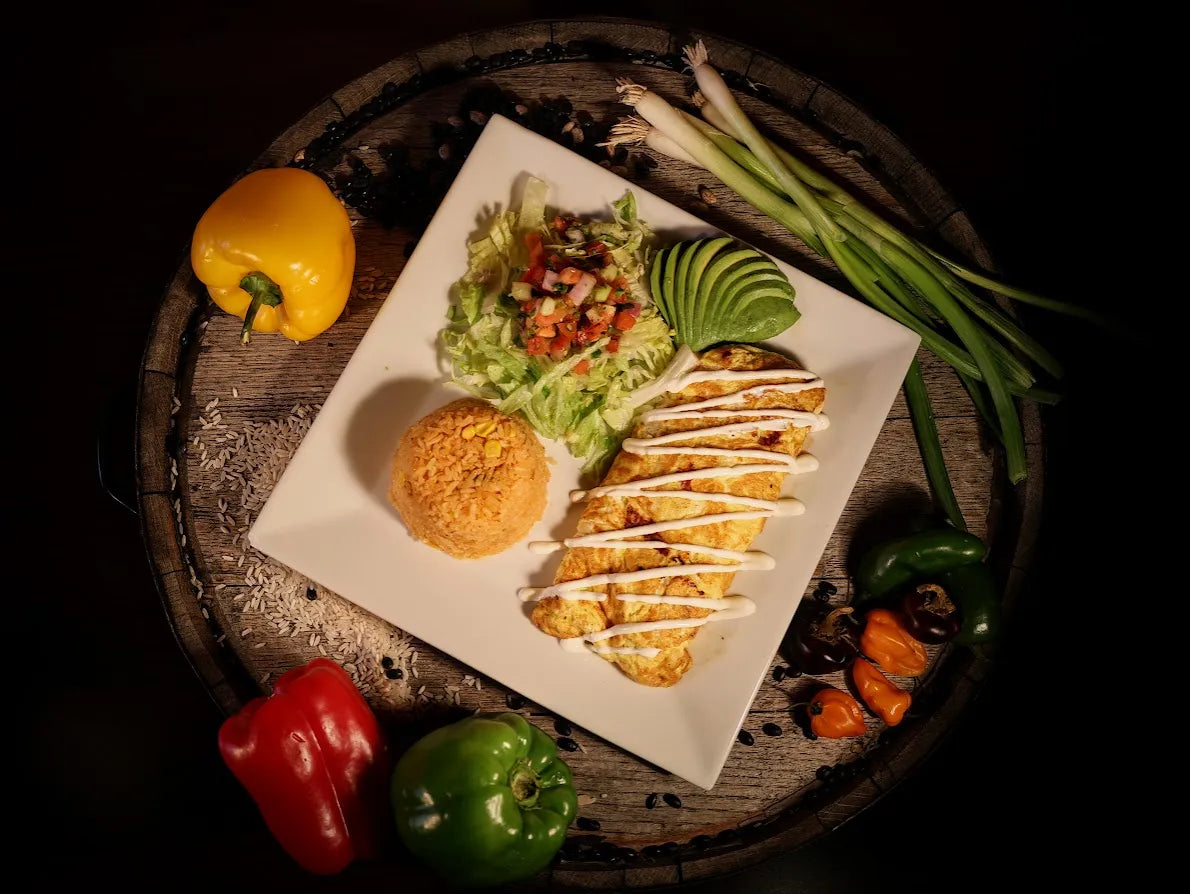 Omelette stuffed with American cheese and a choice of protein topped with avocado slices. Served with a side of rice, lettuce, sour cream, and pico de gallo.