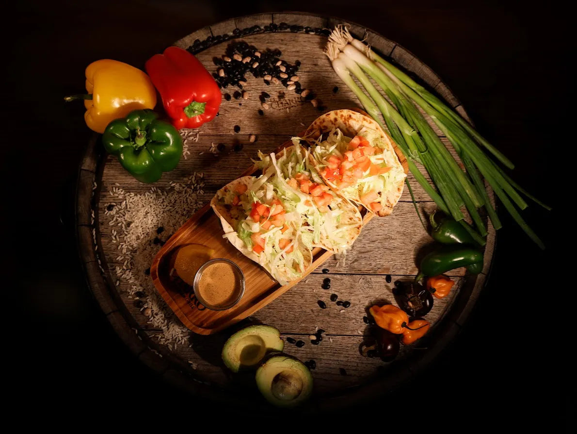 Three soft flour tortilla filled with grilled tilapia. Topped with lettuce, tomatoes, and cheese. Served with rice and special sauce.